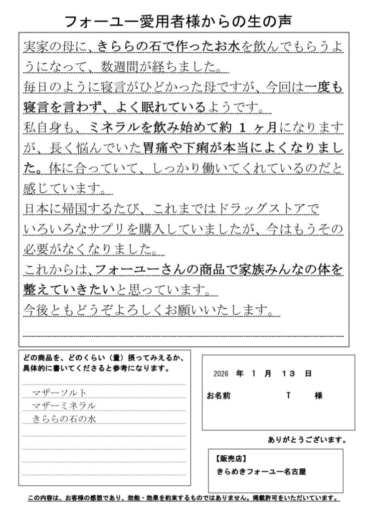 これからは、フォーユーさんの商品で家族みんなの体を整えていきたいと思っています。